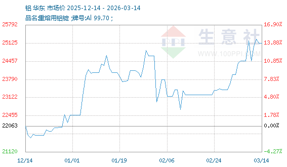 生意社:2026年3月11日中铝铝锭(AL99.70)现货价格上涨
